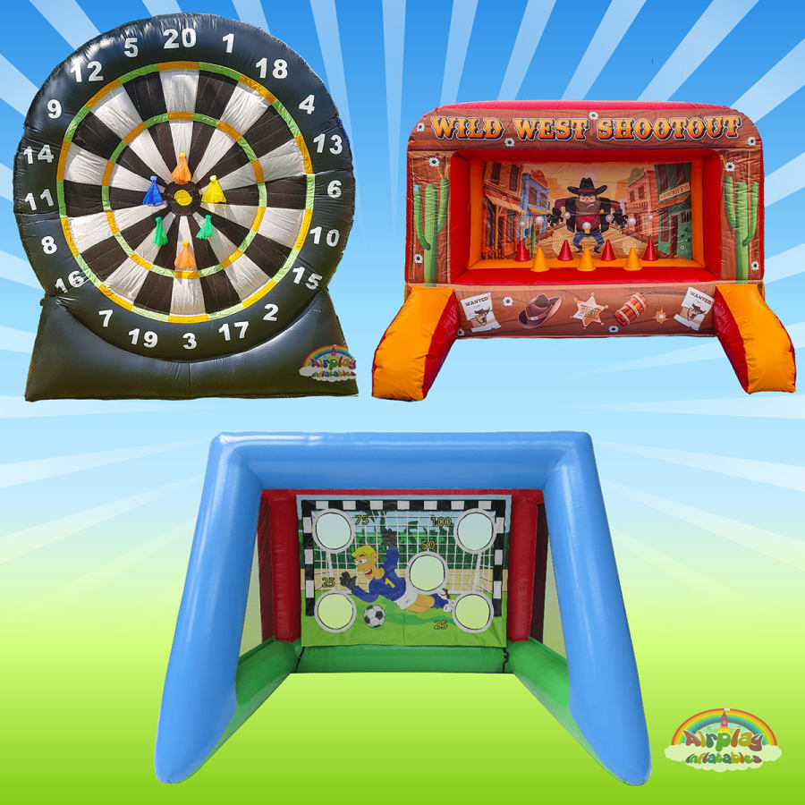 This inflatable games package is an ideal choice for the larger party or event. It's great for school fetes & fairs too. The package is suitable for both children and adults and will keep them entertained for hours. Package includes: