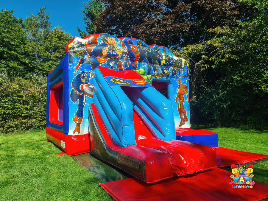 This Superhero Bouncy Castle Slide Combo features vibrant artwork and includes popular characters from both Marvel and DC universes, making it a hit with all children, from Spider-Man, Batman and Superman to Hulk, Captain America and Ironman, kids will be thrilled to see their favourite superheroes come to life.