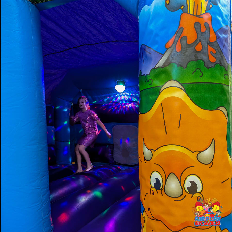 Make your next event unforgettable with our Dinosaur Disco Bouncy Castle Combo. Book now and let the roaring fun begin!