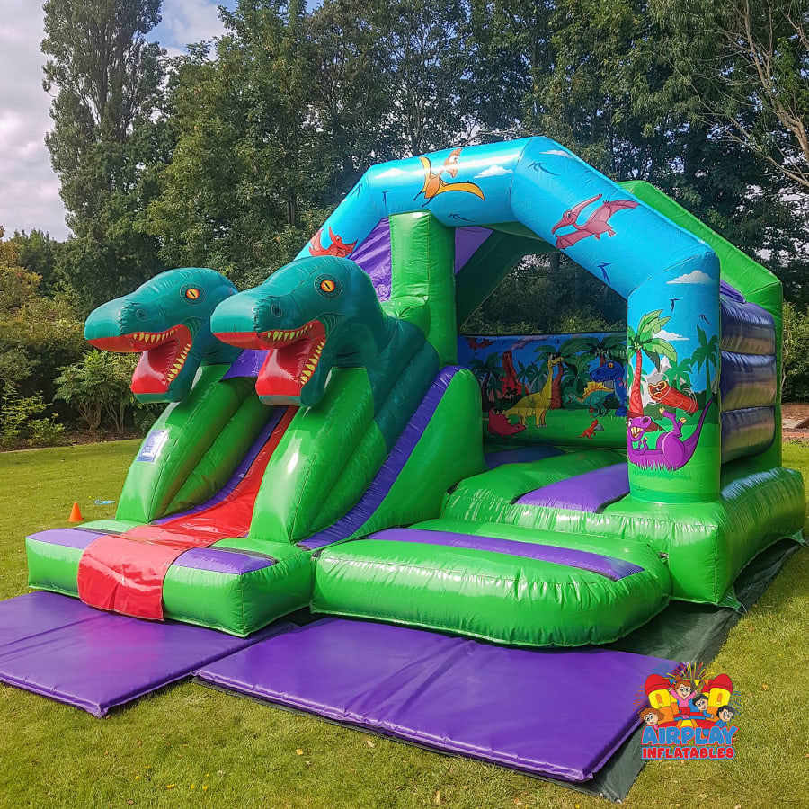 🎈.Our Dinosaur Bouncy Castle Combo is the ultimate centrepiece for any dinosaur-themed party. Whether it's a birthday party, school fair, family fun day or community event, our Dino themed inflatable castle is sure to be a crowd pleaser!