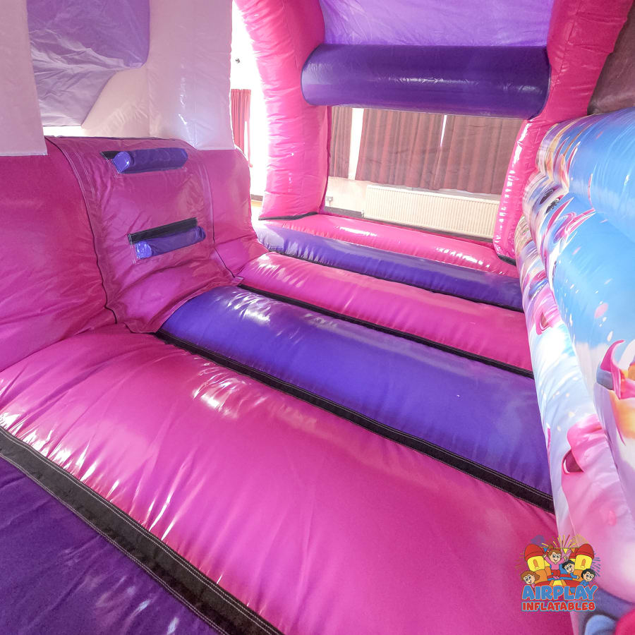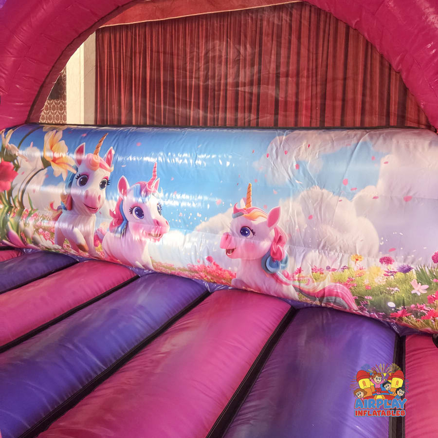 Turn your event into a fairytale adventure with our purple and fuchsia 3D Unicorn Bouncy Castle. With its contoured arch and stunning unicorn design, it’s the perfect inflatable for Unicorn themed children’s birthday parties, and special celebrations.