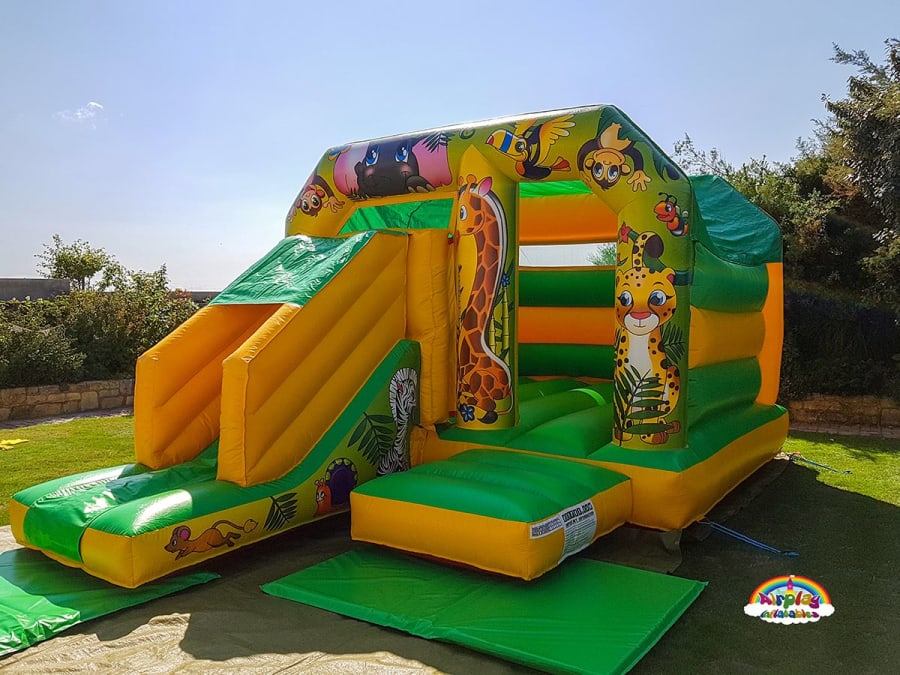 Bring the excitement of the deep jungle to your next event with our Jungle Safari Bouncy Castle Combo! This spacious 18x12 ft bouncy castle is perfect for kids who love adventure and wildlife. With its vibrant yellow and green colours, it's sure to capture their imagination and provide hours of excitement and bouncing fun!