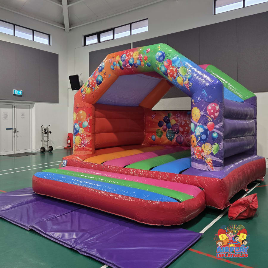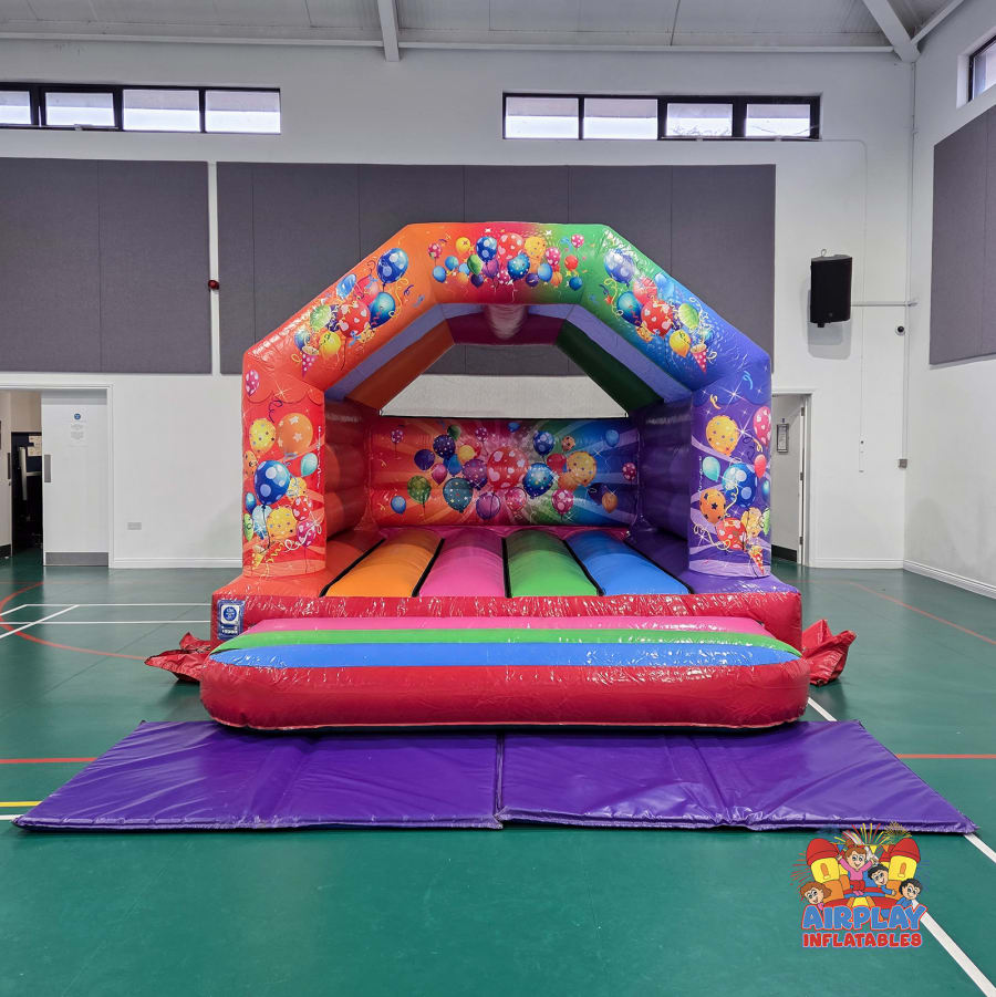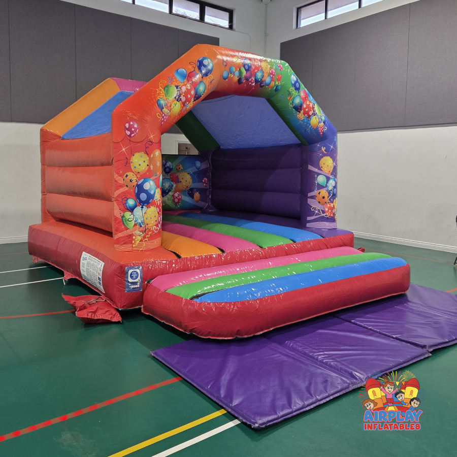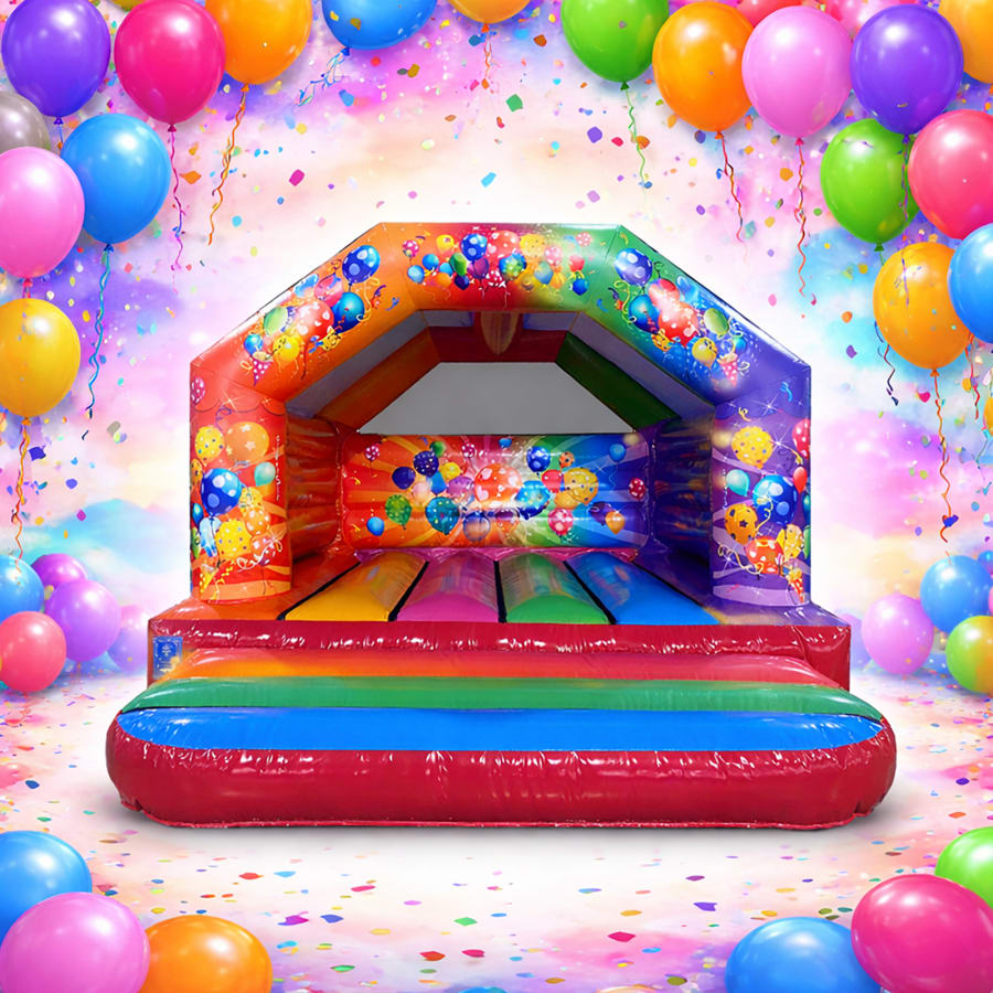 Planning an unforgettable celebration? Elevate your event with our Party Bouncy Castle, a vibrant and fun-filled addition perfect for birthdays, family gatherings, and special occasions! Featuring a delightful multi-coloured design, this party-themed bouncy castle is adorned with cheerful balloon graphics, adding a party touch that excites kids will love.