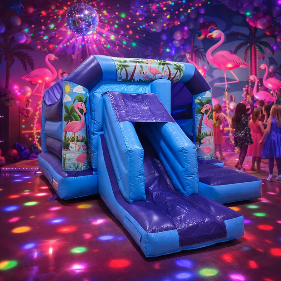 Whether you're hosting a birthday party, corporate event, or family gathering, our Flamingo Disco Bouncy Castle Combo is sure to be a hit. Contact us today to book this fantastic inflatable for your next event and make it a celebration to remember!