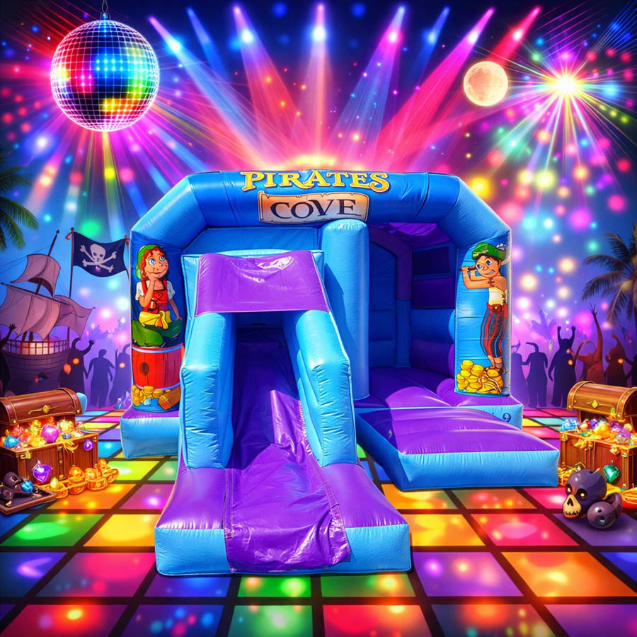 Whether you're hosting a Pirates themed birthday party, school fete or fair, or just want to inject fun and excitement into your gathering, our Pirates Disco Bouncy Castle Combo is the ideal choice. and promises hours of laughter and fun for the kids.