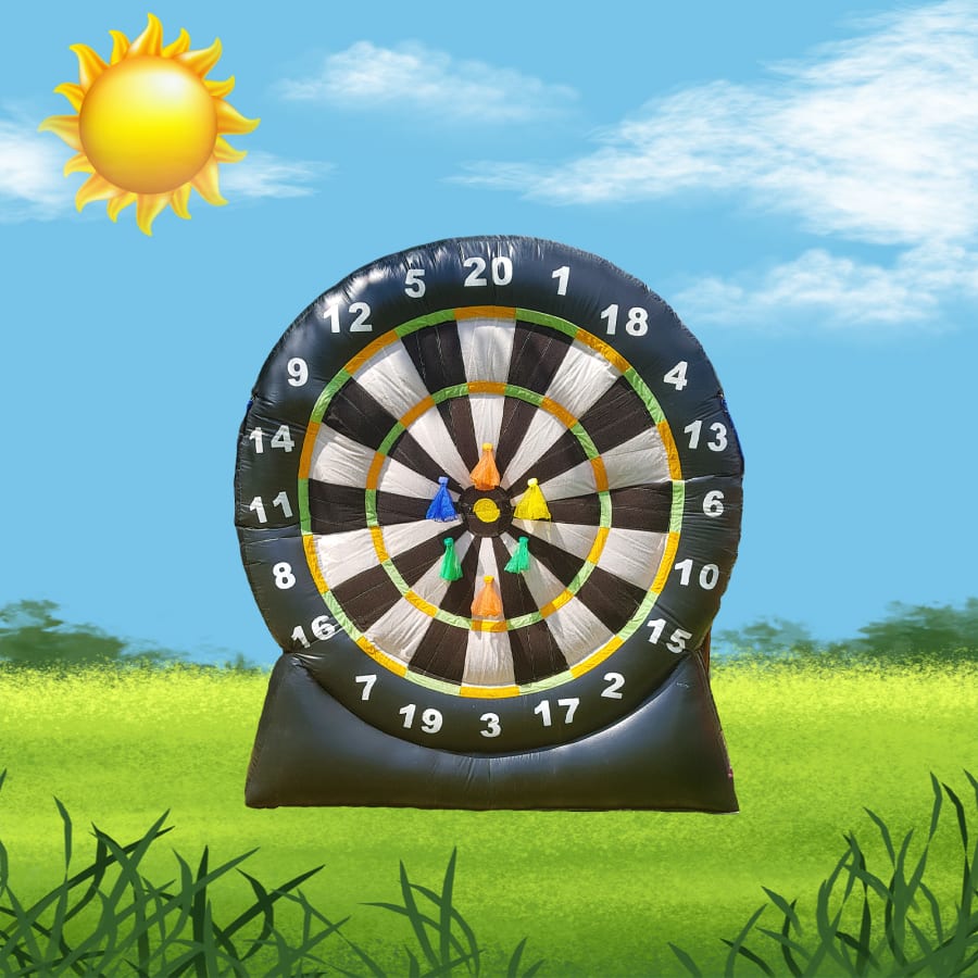 180! Maybe not! Regardless of your skill levels you & your whole family will have loads of fun playing darts with this giant inflatable darts board and velcro darts. At 8 feet in diameter you really cannot miss! As well as garden parties this inflatable make a great side attraction at school fetes, fairs, charity & corporate events.